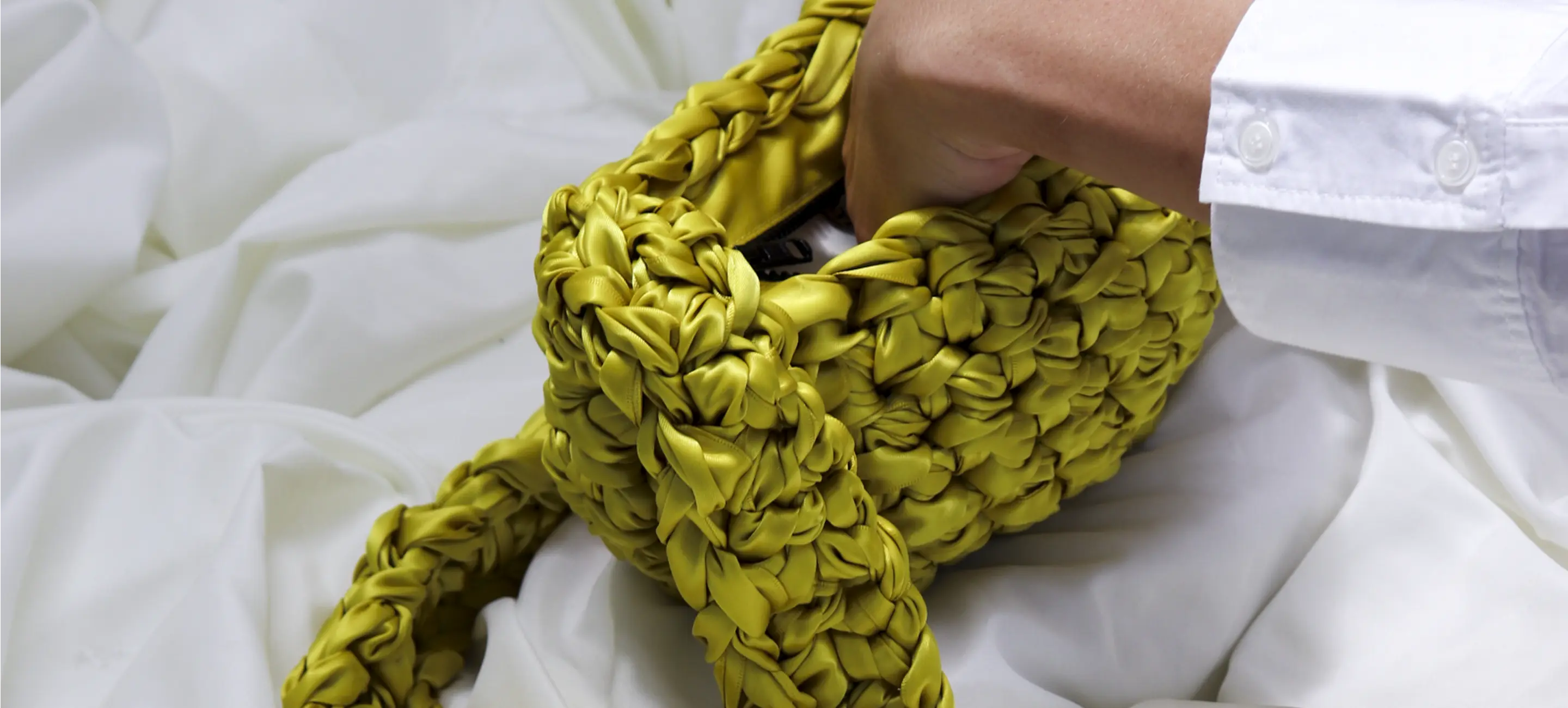 Satin ribbons, crocheted into silhouettes that linger. Each piece is hand-crafted in small runs in Cape Town and made to order, each piece is unique in its own way such as the person who will be wearing Trame Atelier